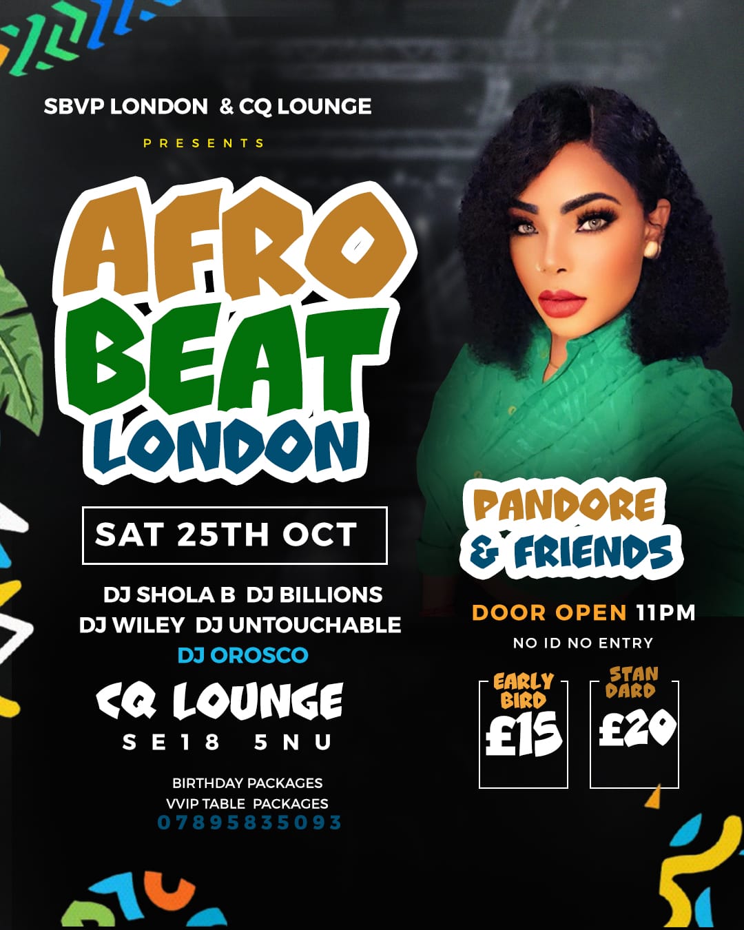 PANDORA & FRIENDS NIGHT OUT @AFROBEAT LONDON SAT 25TH OCT @CQ LOUNGE SE18 5NU